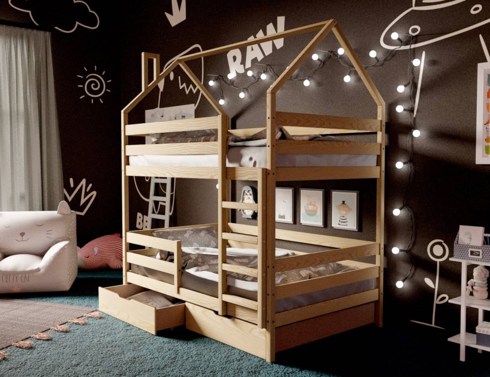 *Стоимость указана за модули: Кровать-домик двухъярусная 80*160 без покраски (Ящики в стоимость не входят)