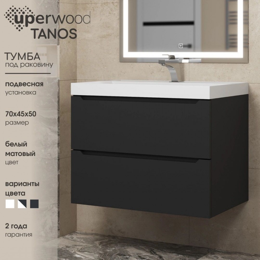Интернет-магазин "Мебель 24" рад предложить Тумба под раковину Uperwood Tanos 70 см, подвесная, черная матовая по привлекательной цене, от производителя Uperwood (Н. Новгород).